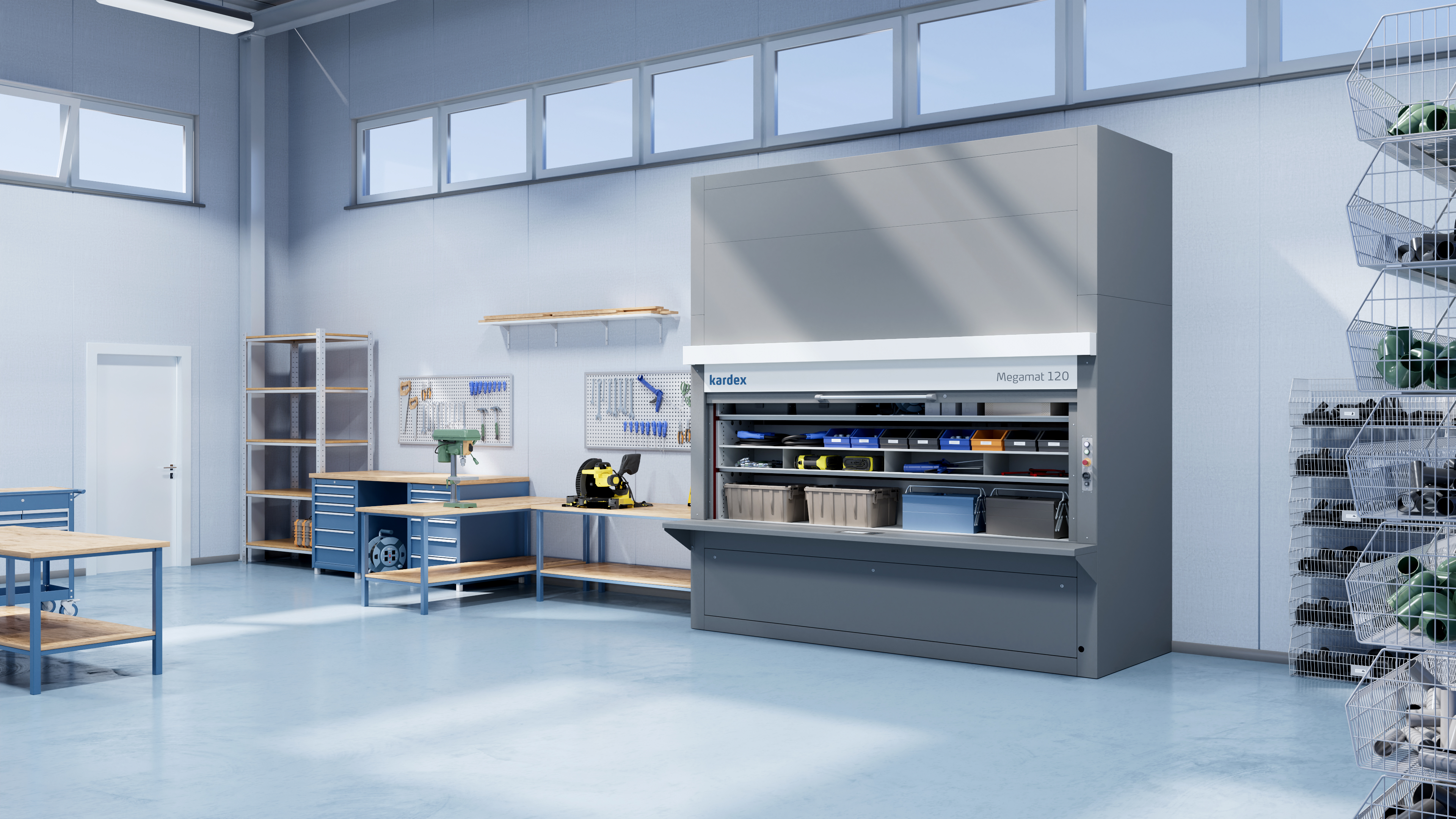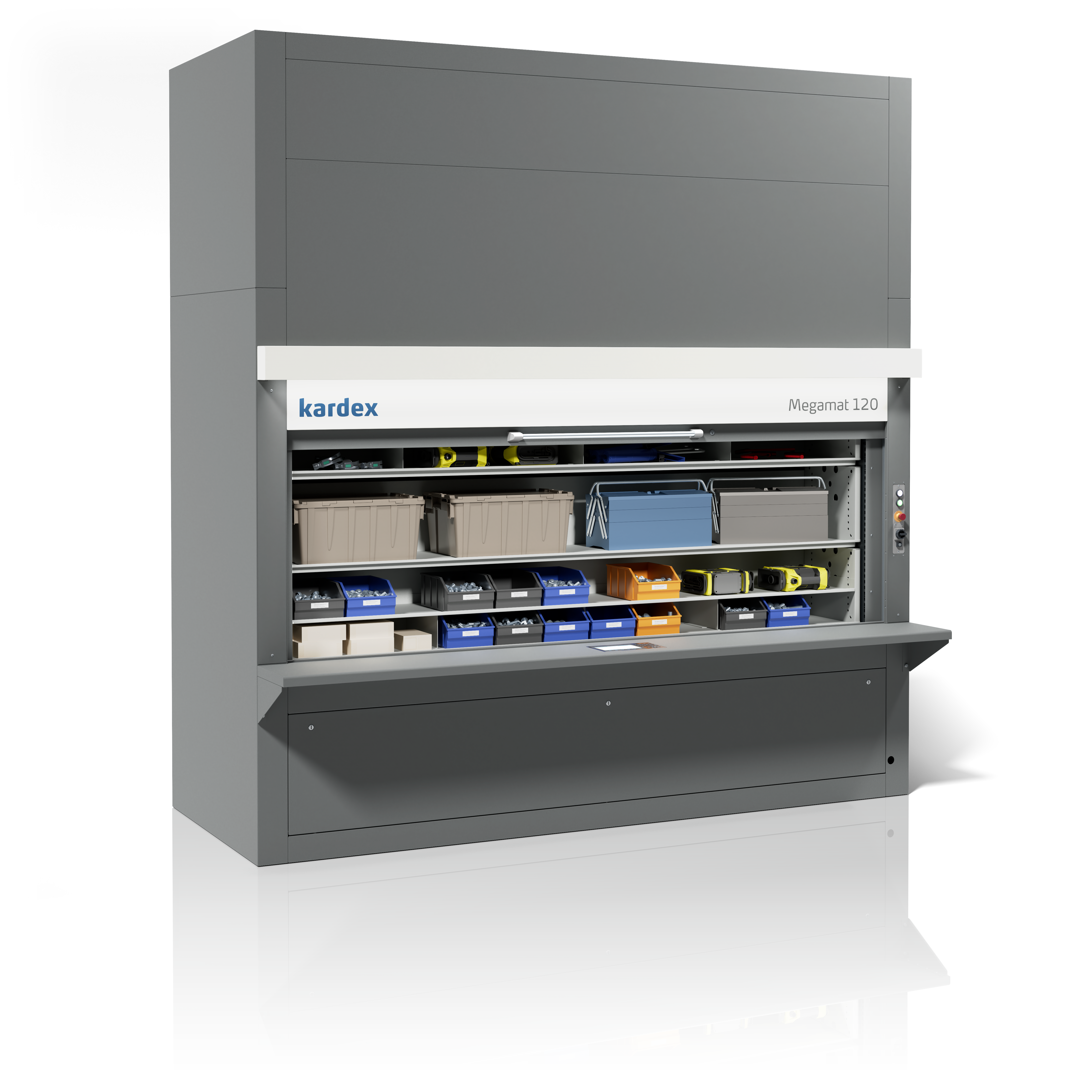 Der Kardex Megamat Essential schafft Ordnung für deine Werkzeuge, Ersatzteile und Verbrauchsmaterialien. Er spart Fläche und schafft Ordnung, damit du dich auf das Wesentliche konzentrieren kannst: deine Arbeit.