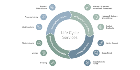 Der Life Cycle Service von Kardex bietet ganzheitliche, flexible und modular aufgebaute Lösungen, die den effizienten Betrieb Ihrer Logistik- und Lagersysteme sicherstellt. Neben Vor-Ort Services bieten wir digitale Lösungen wie Remote Support und Preventive Maintenance an. Wir können Sie auch bei der Zukunftsplanung und beim Vorausdenken unterstützen.