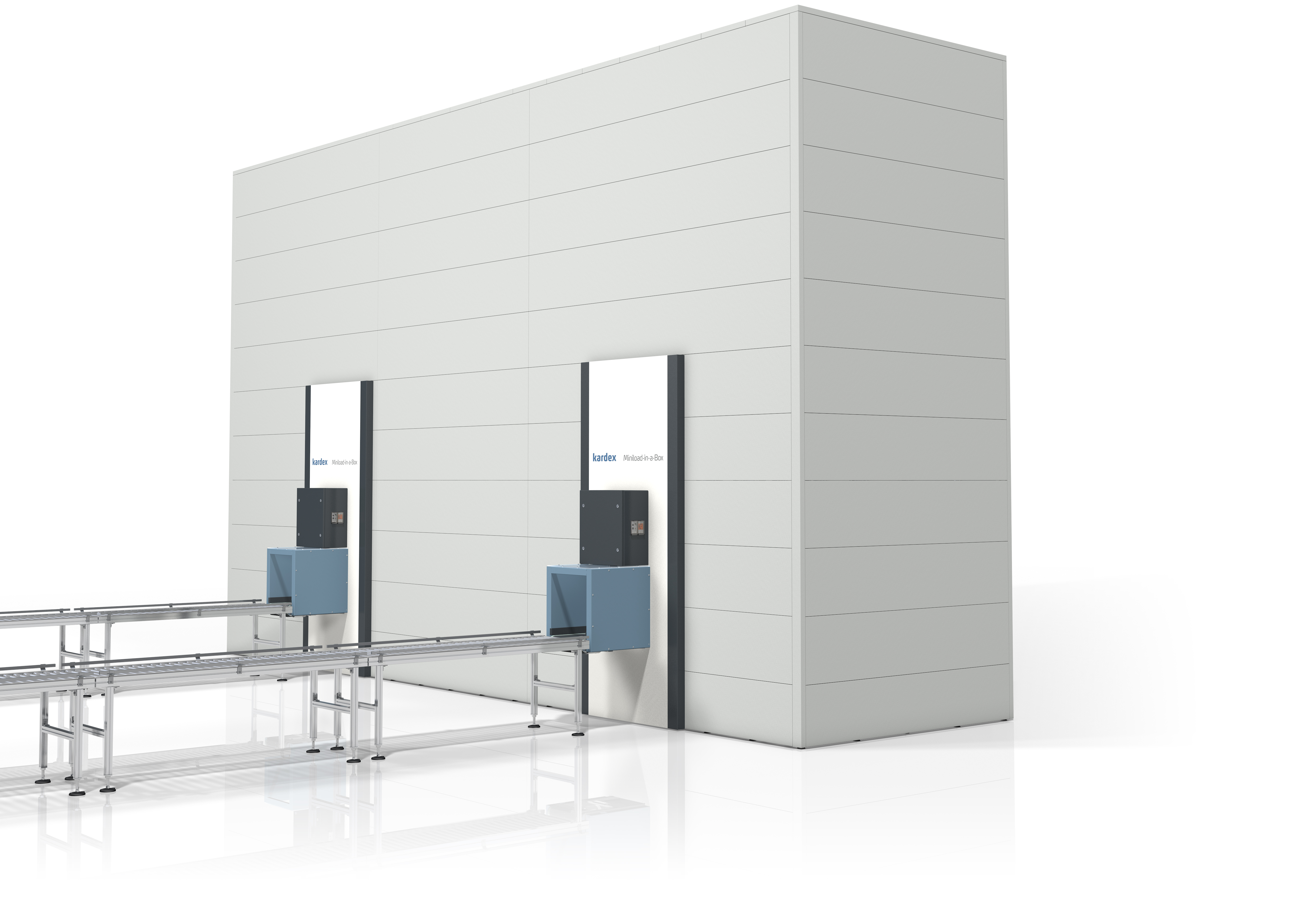 The Kardex Miniload-in-a-Box easily connects to existing conveyor technology, either for manual storage and retrieval of bins and trays or for automatic operation and transfer to existing material flow.