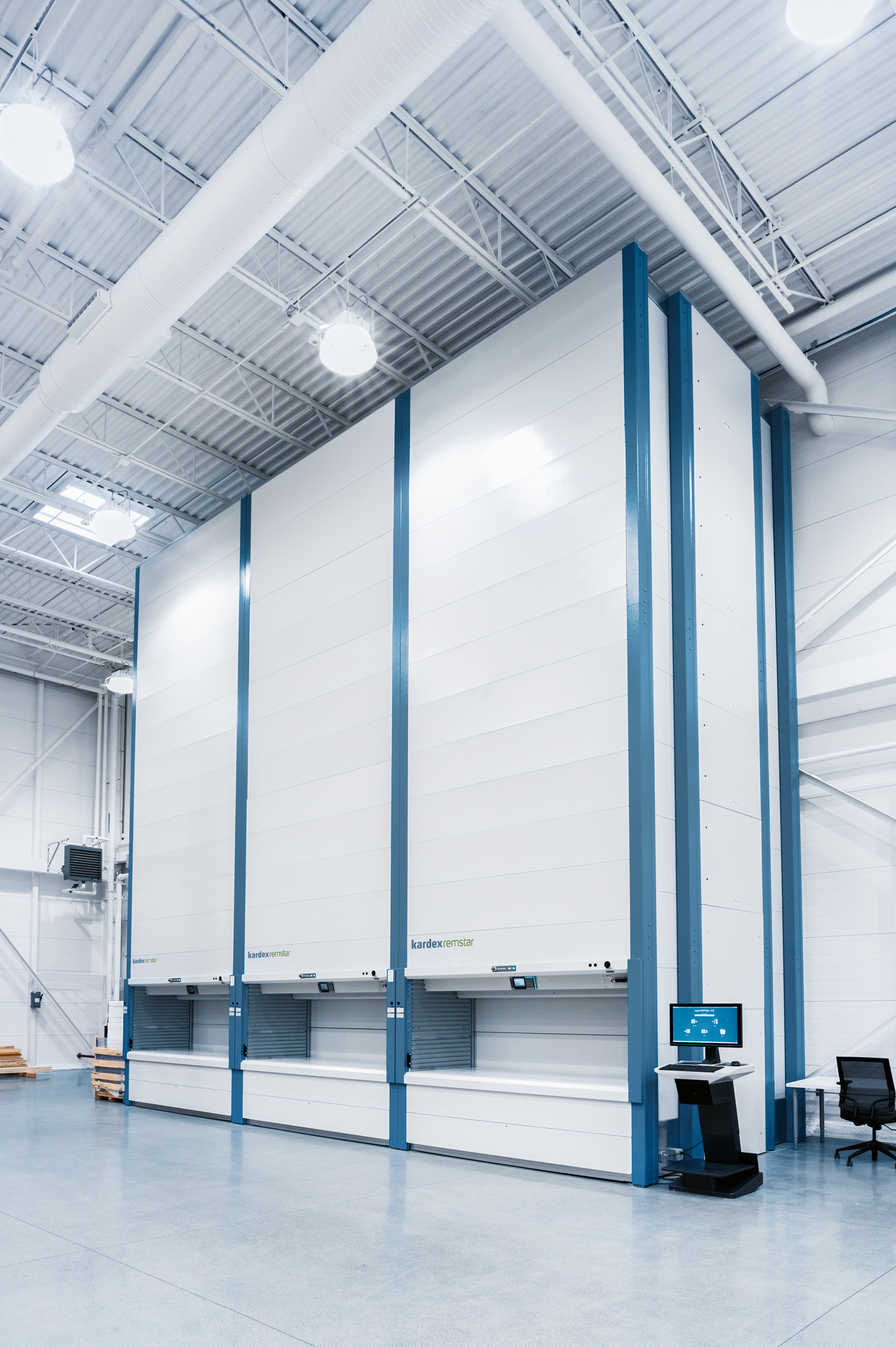 - Space-saving design: Maximize your office space with our compact and ergonomic designs. The capacity of our Kardex Megamat 115/120/125 is equivalent to approximately 16 four-drawer filing cabinets, but takes up much less space.